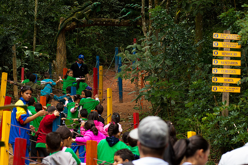 Teatro - Animais da Fazendinha - Trilhas Ecológicas - Mini-Arvorismo - Casa indígena - Hortinha - Estufa - Folclore do Brasil - Casa de pau-a-piqui - Tirolesa - Brinquedos Motorizados - Labirintos - Minhocão - Cineminha - Escalada Radical - Reciclagem - Coleta Seletiva - Túnel do Leal - Lago dos Patos